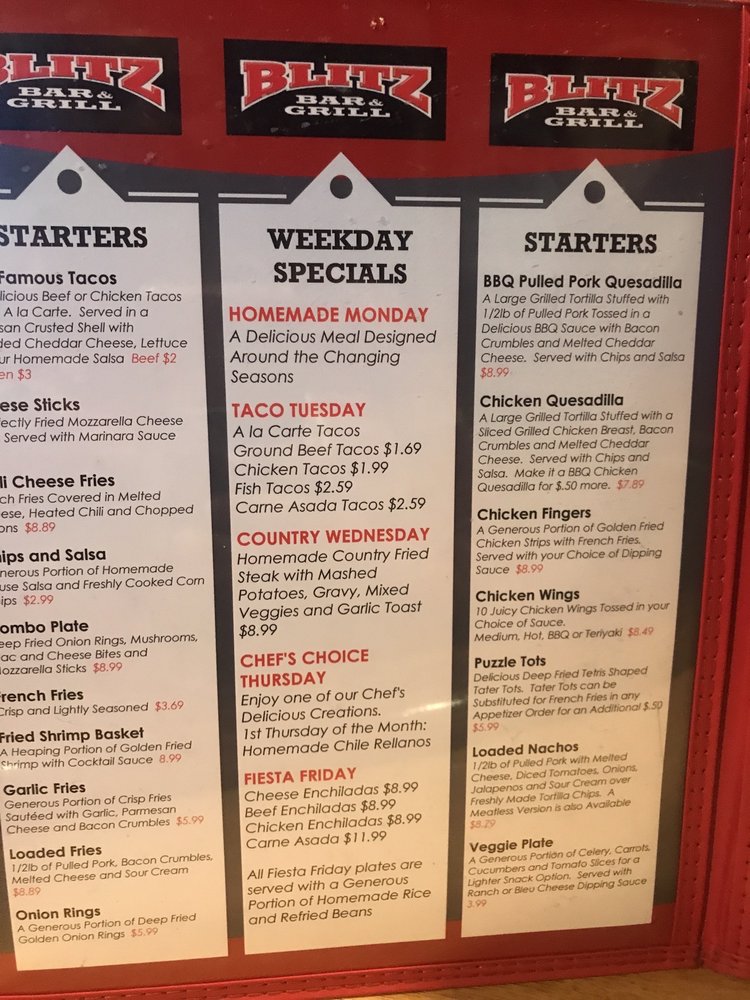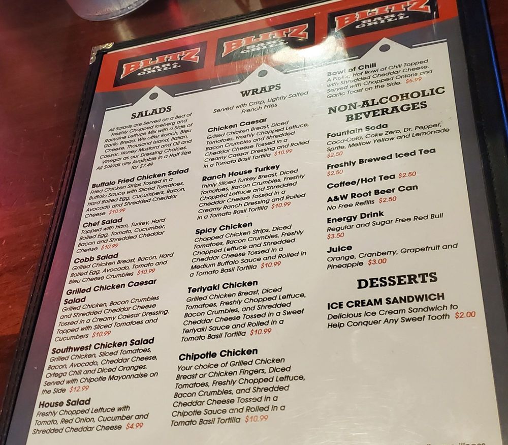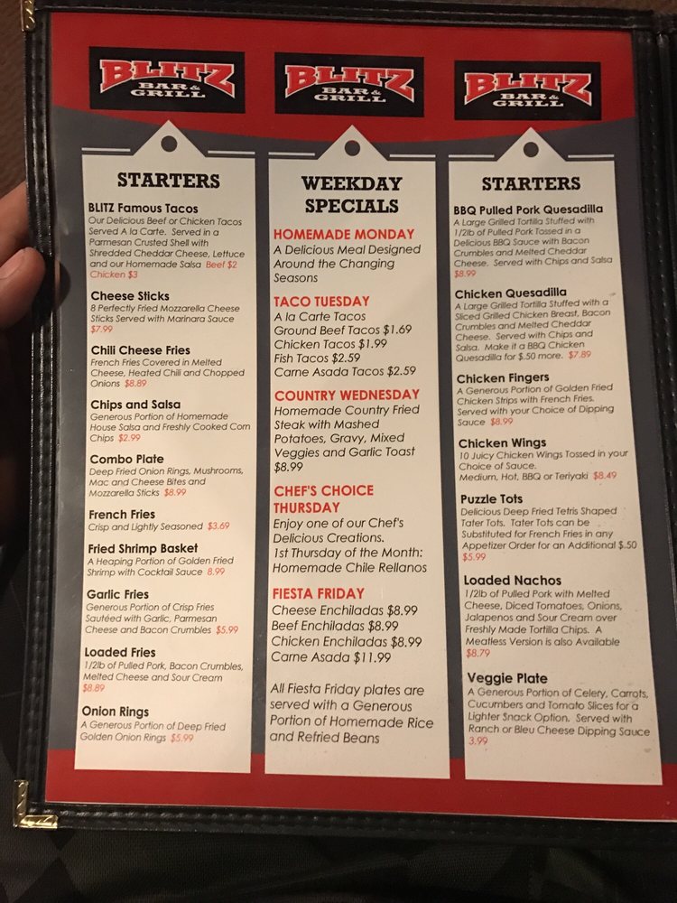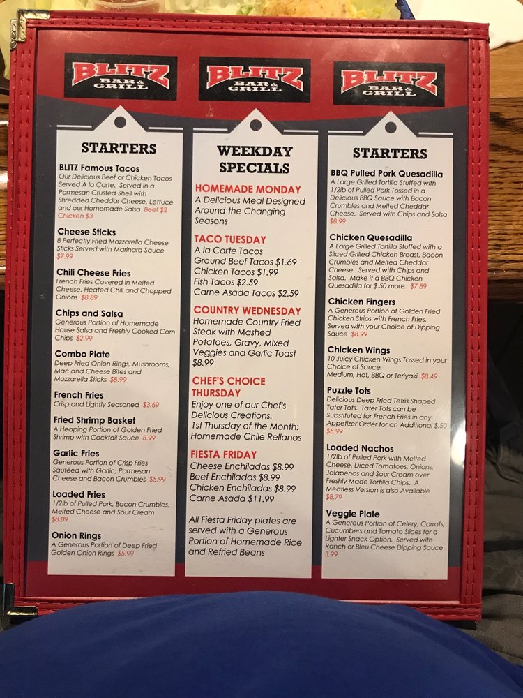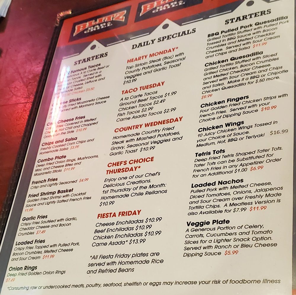 Blitz Bar & Grill offers a delightful American dining experience with a variety of options for patrons. Located at 400 S Rock Blvd in Sparks, NV, this women-owned establishment provides a range of amenities such as takeout, delivery, and even accepts cryptocurrency. The menu features mouth-watering items like the BBQ Pulled Pork Sandwich, Blitz Famous Tacos, and Buffalo Fried Chicken Salad. Guests can enjoy their meals in a casual setting with options for outdoor seating and private dining. With offerings like Happy Hour specials, a full bar, and TV entertainment, Blitz Bar & Grill is the perfect spot for groups, kids, or even a quick lunch or dinner. Don't miss out on the chance to try their delectable dishes and experience the welcoming atmosphere at Blitz Bar & Grill.